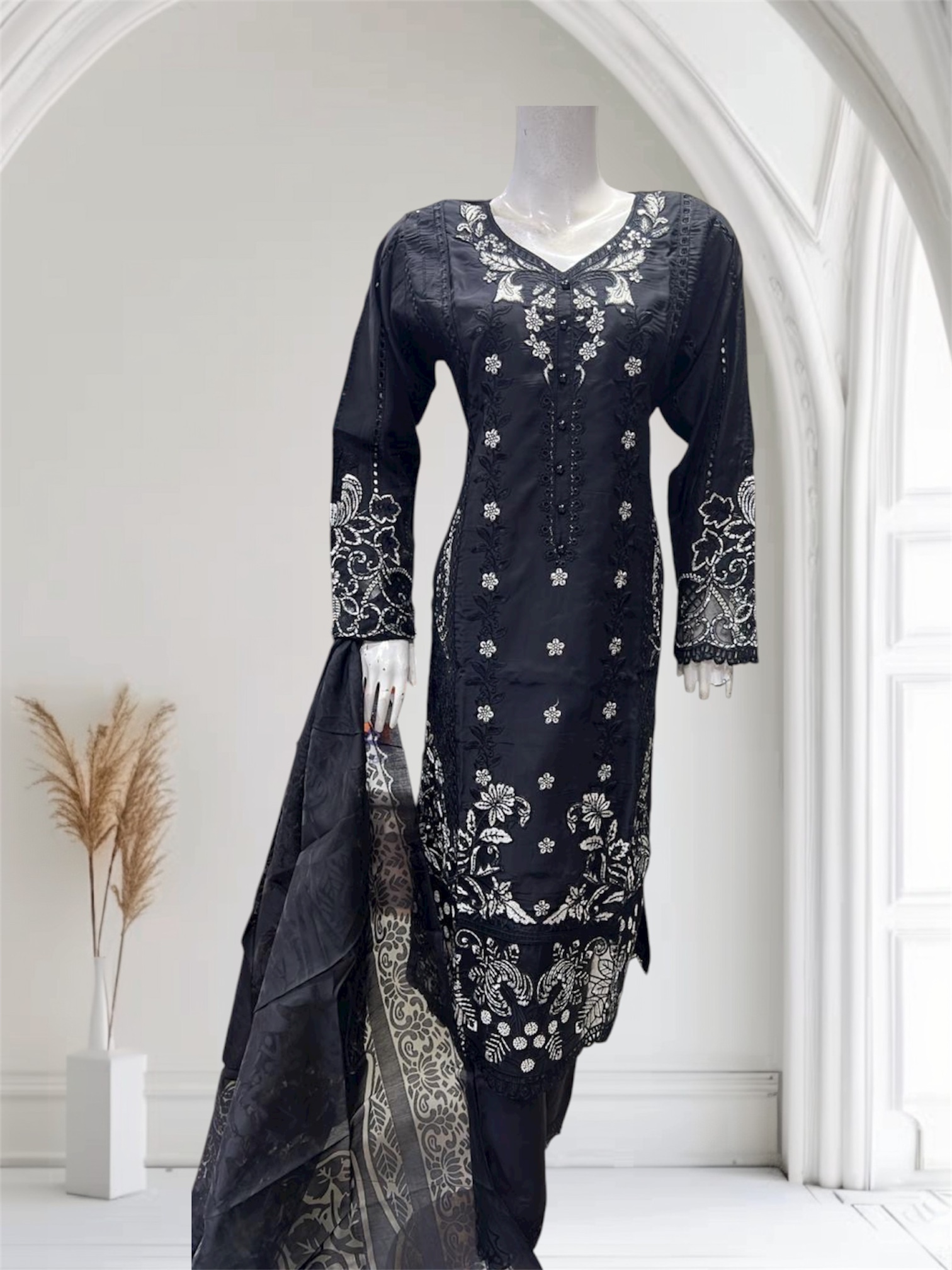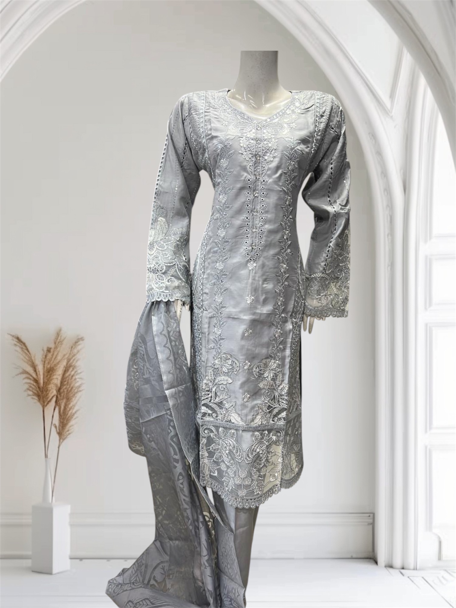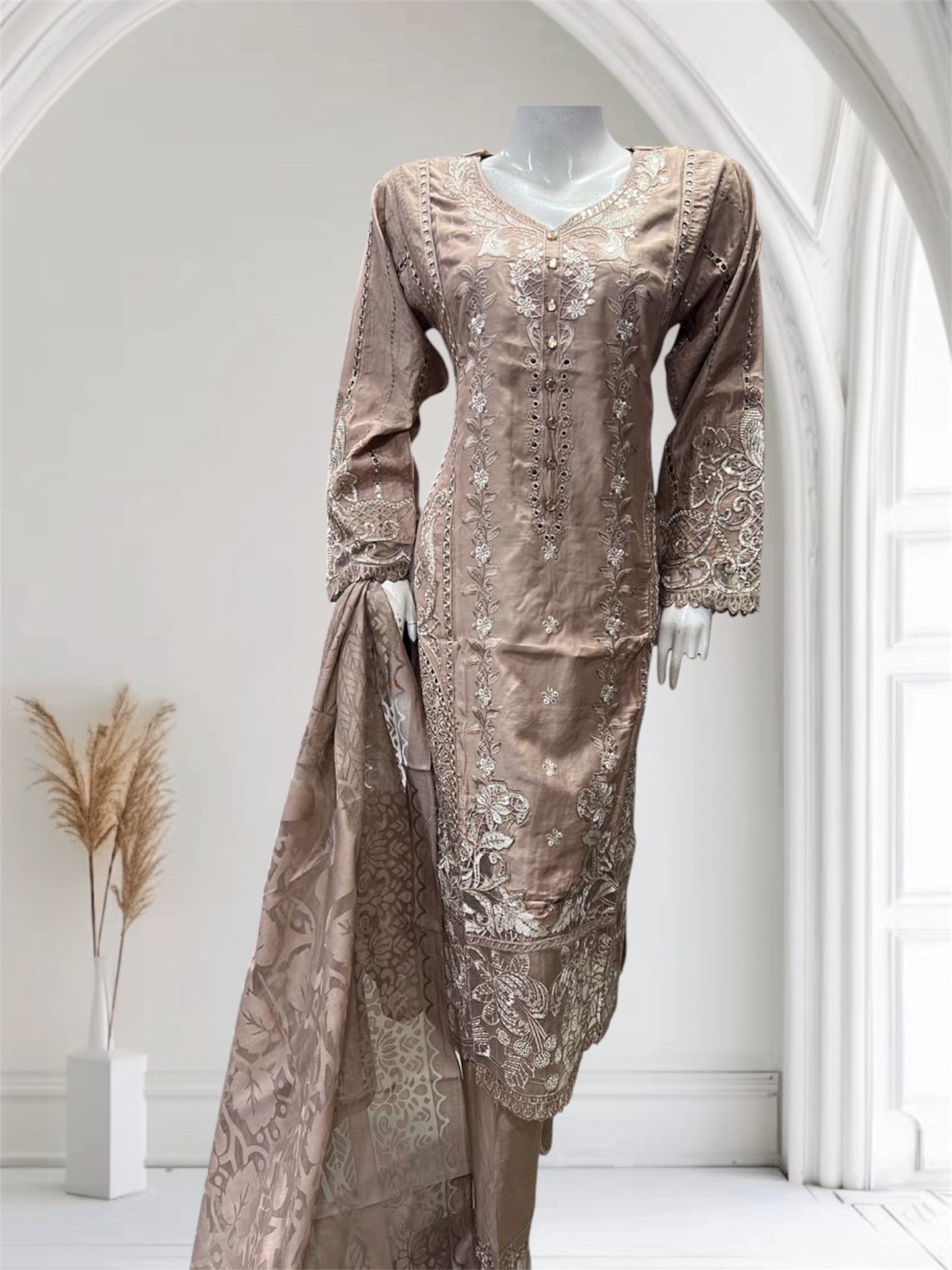 Indulge in the elegance of our Embroidered Salaf Suit, a stunning ensemble that effortlessly combines tradition with contemporary. Crafted from high-quality fabric, this suit features intricate sequins embroidery that adds a touch of glamour and sophistication, making it perfect for special occasions or festive celebrations. The beautifully embroidered dupatta complements the suit, enhancing its overall allure and providing versatility in styling. The rich hue serves as a timeless canvas, allowing the exquisite embroidery to shine through, while the comfortable fit ensures ease of movement. Elevate your wardrobe with this captivating salaf suit that promises to make you the center of attention wherever you go.