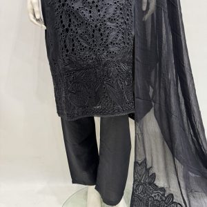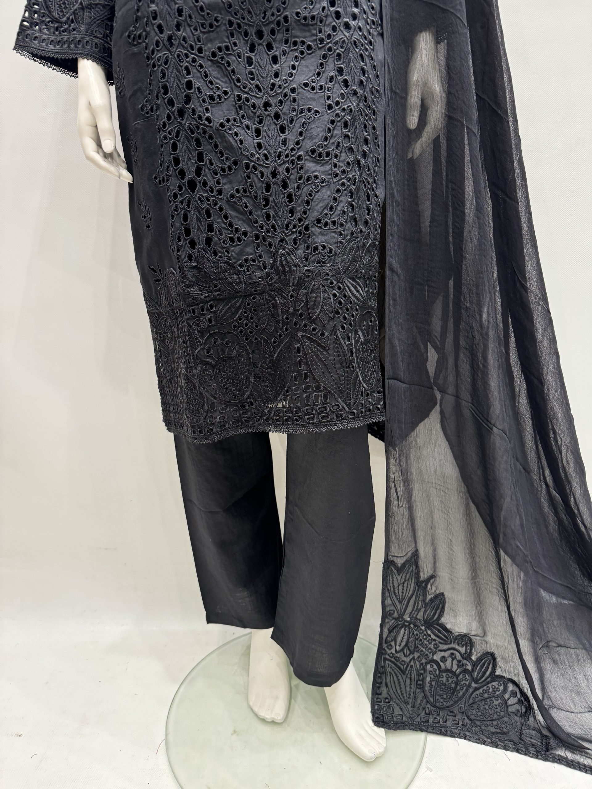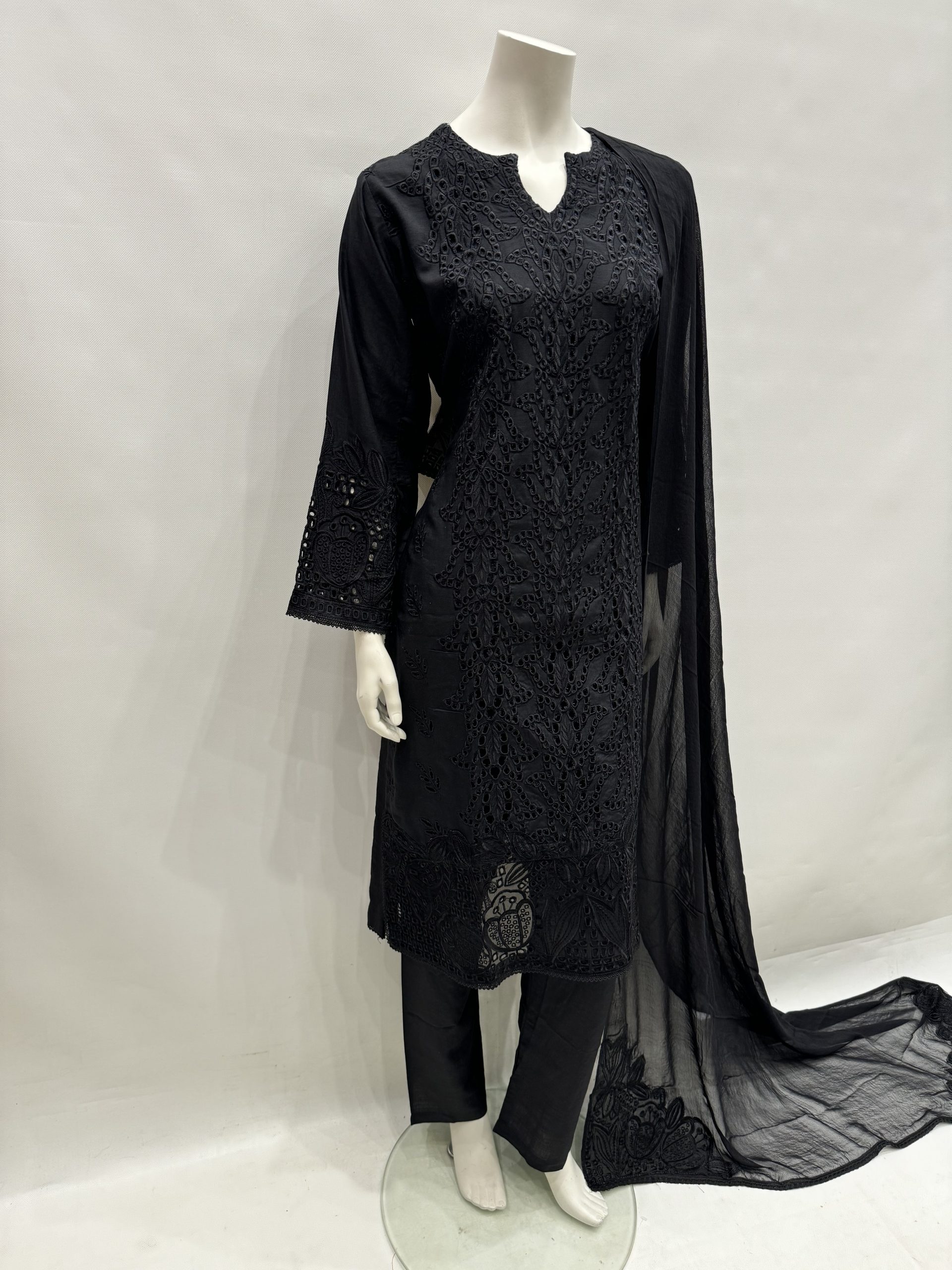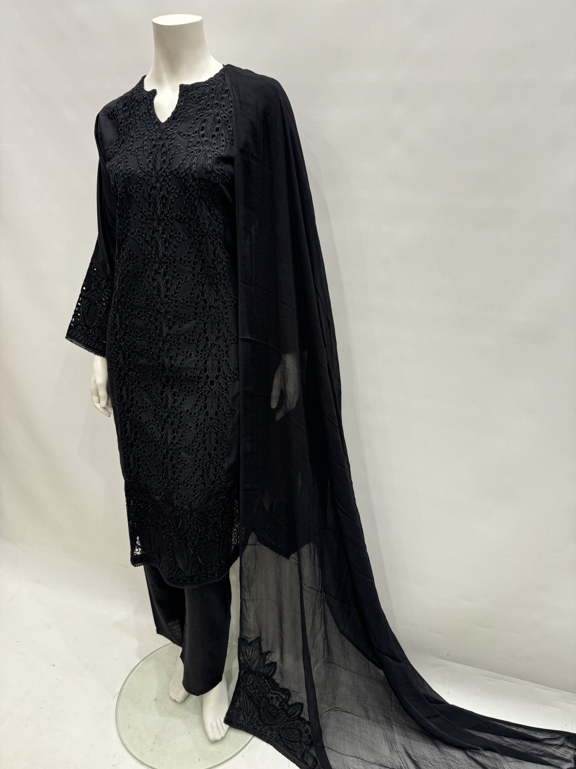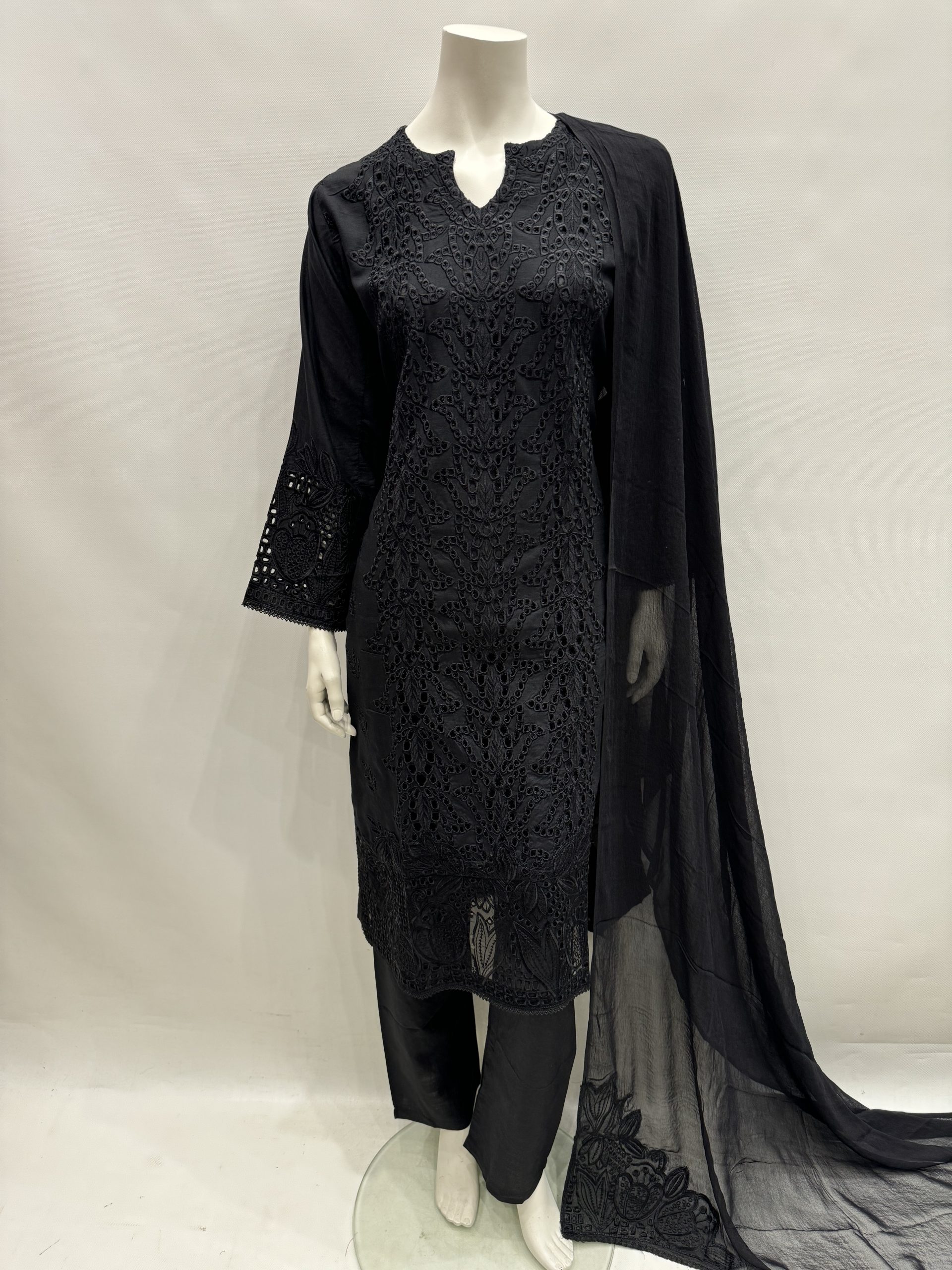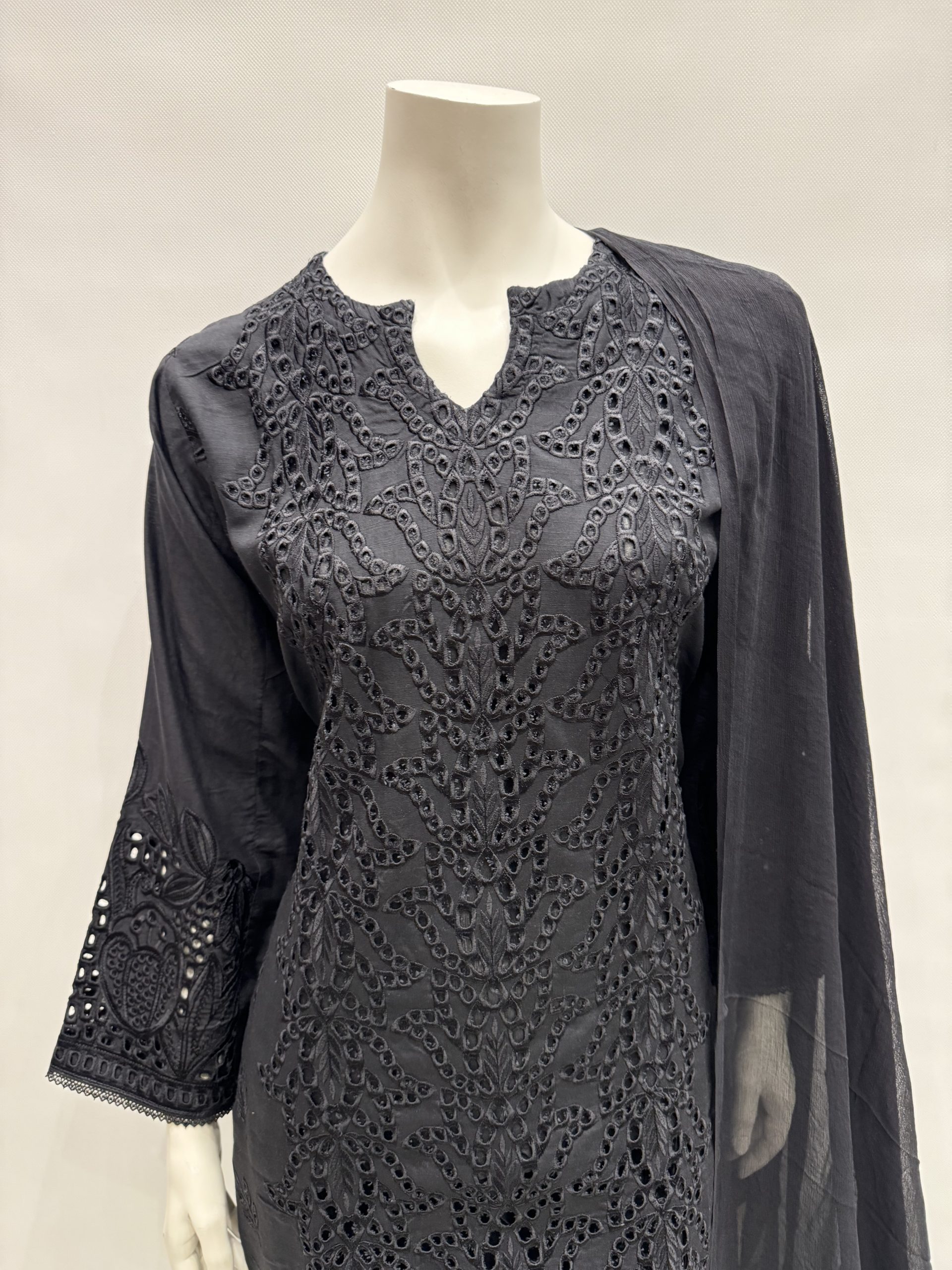 E25-D3 Trendy Cut Work Salwar Kameez Black
